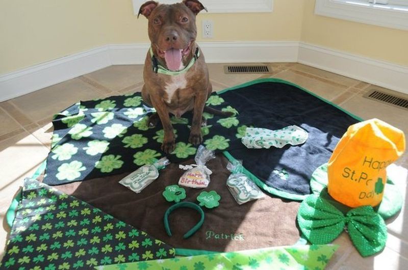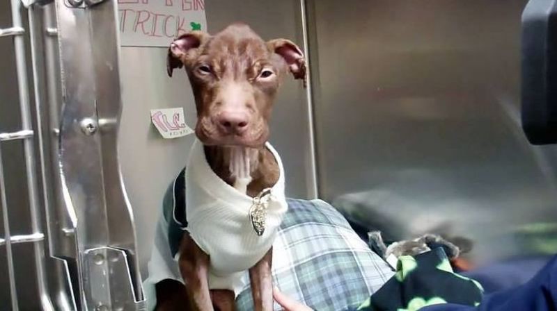 Накануне Дня Святого Патрика в нижней части мусоропровода жилого дома в Ньюарке, штат Нью-Джерси, обслуживающим персоналом в мешке для мусора был обнаружен годовалый питбуль. Пёс весил всего 8 кг вместо необходимых 22. Он оголодал настолько, что не мог ходить. Пса незамедлительно доставили в ветеринарную клинику Garden State Veterinary Specialists.
