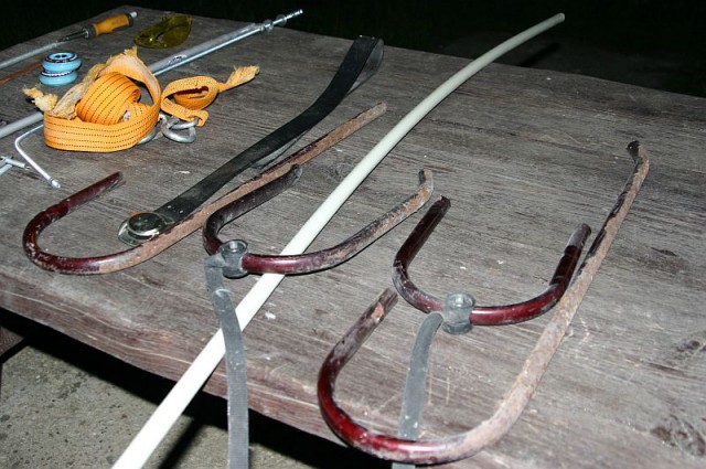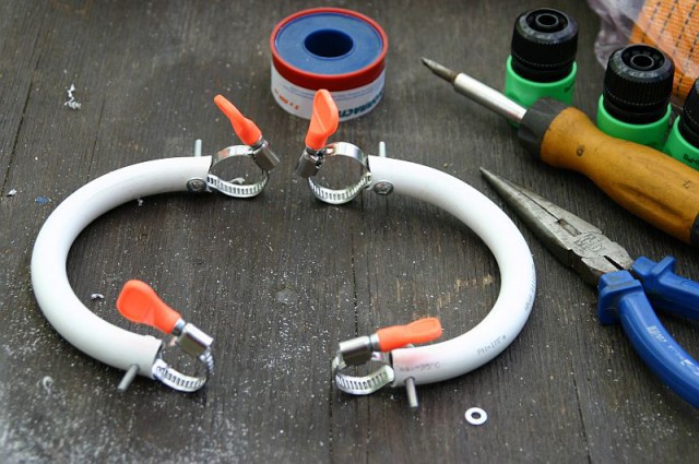 Пока сохнет рама, рукожопим подлапники из водяной трубы алюминиево-пластиковой, она и форму держит, и не давит сильно.