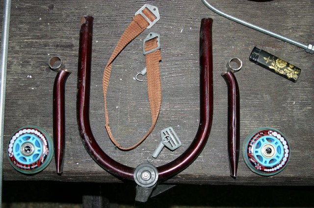 Приблизительно набрал нужных железяк, изначально хотел поставить колеса от роликов, но потом передумал.