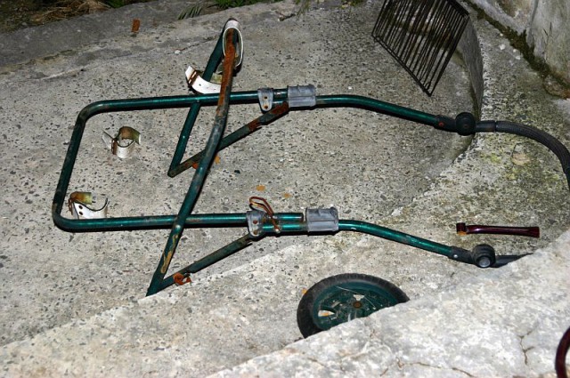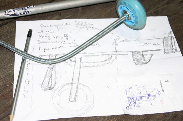 Теперь, когда дело как говорится в шляпе, нужно сделать нормальный костыль этому тюленчику! Ато он ползая стирает себе задние лапы. И я вспомнив как мы в 80х-90х клепали себе кастомы из водопроводных труб и Уралов, начал кардинально решать вопрос.