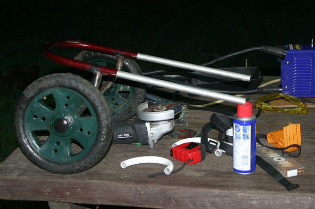 Попалась под руку старая кроляска, и её в дело! Колеса и оси нужны.