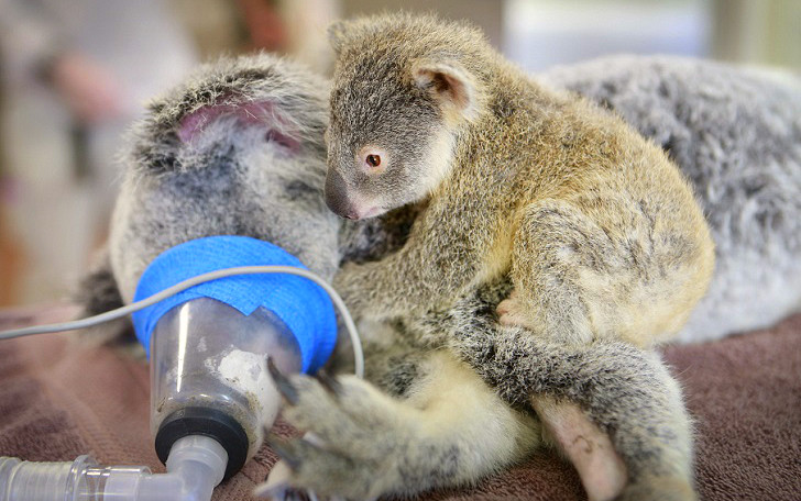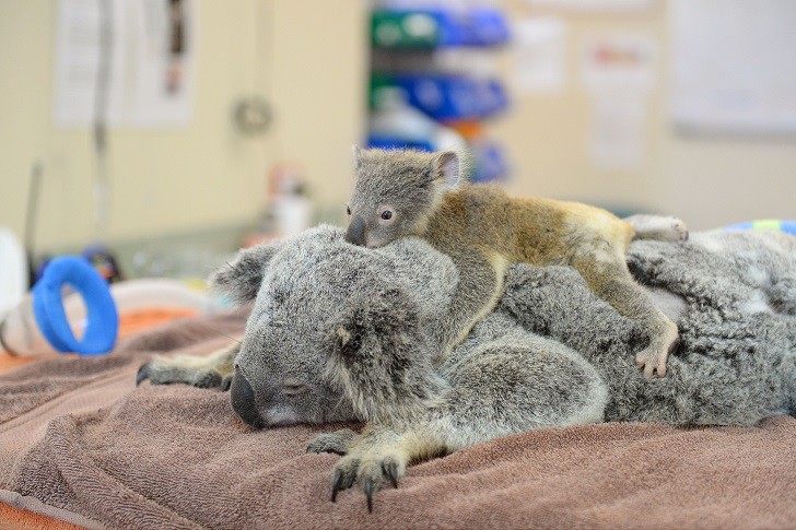 Любовь — повсюду. Шестимесячный коала Фантом не бросил свою маму Лиззи, когда она восстанавливалась после травмы, полученной в результате наезда автомобиля.