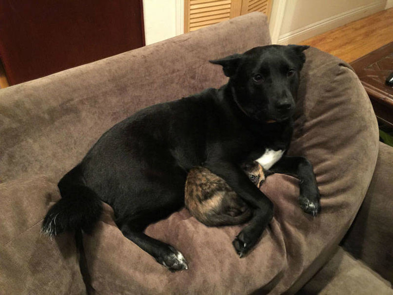 Больше чем просто фото - собака успокаивает кота во время грозы...