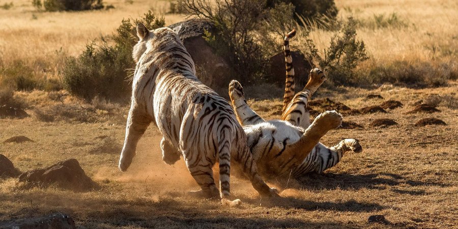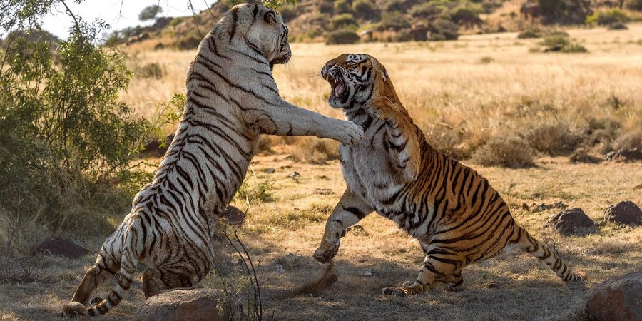 Тигров признанно считают великолепным бойцами, одними из самых страшных и сильных. Увидеть битву гигантов, а уж тем более снять — огромная редкость. Именно такие уникальные кадры битвы двух тигриц за территорию у нас есть шанс увидеть в динамике.