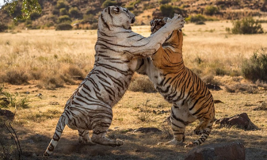3. В этой схватке «оранжевая» тигрица тешила отхватить себе кусок чужой территории. Но «белая» тигрица не собиралась уступать, тем более она была крупнее и массивнее. (Фото Alex Kirichko):